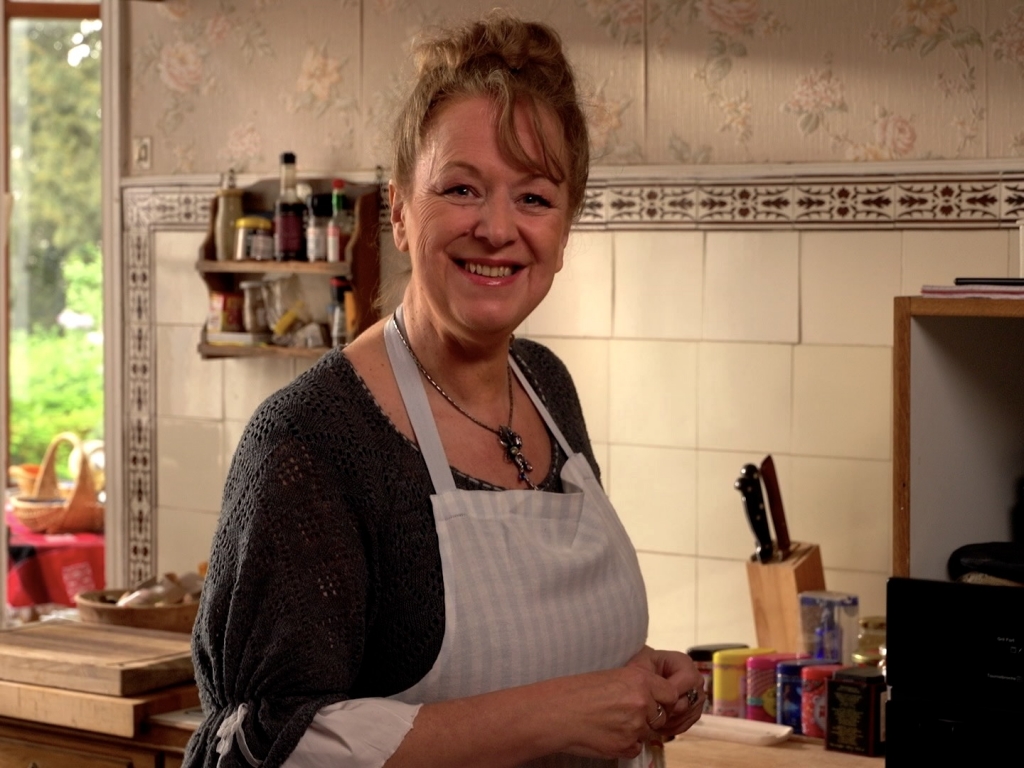 Elle doit réunir les ingrédients pour préparer la tarte aux pommes de Mamie Éliane.