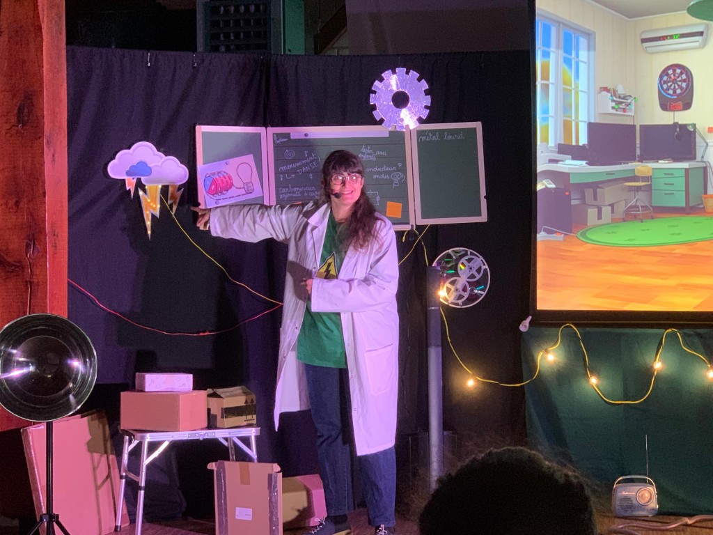 Mes spectacles sont ponctués de magie, de chansons, de clownerie et même parfois de l’intervention d’une marionnette ou d’un objet extraordinaire extrait directement de l'écran.